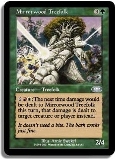 2RW: The next time damage would be dealt to Mirrorwood Treefolk this turn that damage is dealt to target creature or player instead.