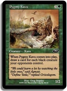 When Pygmy Kavu comes into play draw a card for each black creature your opponents control.