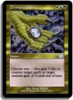 Choose one You gain 5 life; or counter target spell; or target creature gets -2/-2 until end of turn.