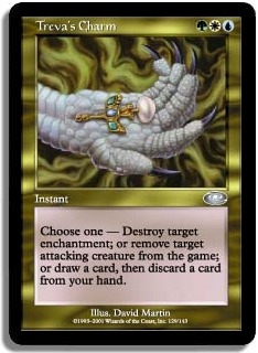 Choose one Destroy target enchantment; or remove target attacking creature from the game; or draw a card then discard a card from your hand.