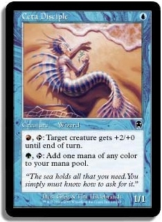 R T: Target creature gets +2/+0 until end of turn. G T: Add one mana of any color to your mana pool.