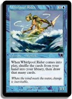 When Whirlpool Rider comes into play shuffle the cards from your hand into your library then draw that many cards.