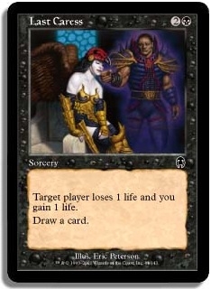 Target player loses 1 life and you gain 1 life. Draw a card.