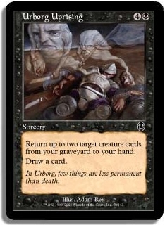 Return up to two target creature cards from your graveyard to your hand. Draw a card.