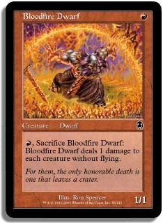 R Sacrifice Bloodfire Dwarf: Bloodfire Dwarf deals 1 damage to each creature without flying.