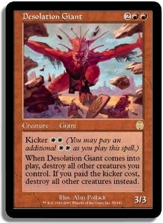 Kicker WW (You may pay an additional WW as you play this spell.) When Desolation Giant comes into play destroy all other creatures you control. If you paid the kicker cost destroy all other creatures instead.