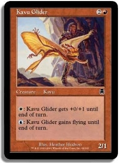 W: Kavu Glider gets +0/+1 until end of turn. U: Kavu Glider gains flying until end of turn.