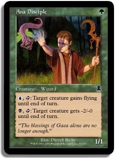 U T: Target creature gains flying until end of turn. B T: Target creature gets -2/-0 until end of turn.