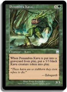 When Penumbra Kavu is put into a graveyard from play put a 3/3 black Kavu creature token into play.