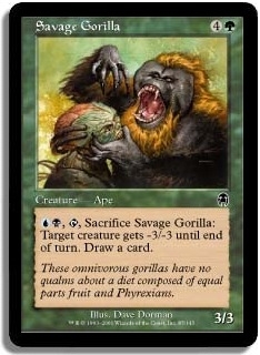 UB T Sacrifice Savage Gorilla: Target creature gets -3/-3 until end of turn. Draw a card.
