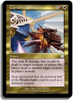 The next X damage that would be dealt to target creature or player this turn is dealt to another target creature or player instead.
