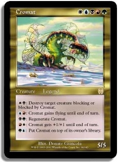 WB: Destroy target creature blocking or blocked by Cromat. UR: Cromat gains flying until end of turn. BG: Regenerate Cromat. RW: Cromat gets +1/+1 until end of turn. GU: Put Cromat on top of its owner's library.