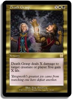 Death Grasp deals X damage to target creature or player. You gain X life.