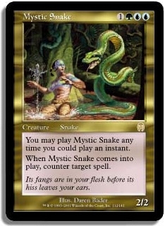 You may play Mystic Snake any time you could play an instant. When Mystic Snake comes into play counter target spell.