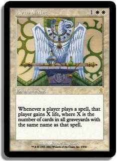 Whenever a player plays a spell, that player gains X life, where X is the number of cards in all graveyards with the same name as that spell.
