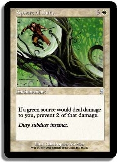 If a green source would deal damage to you, prevent 2 of that damage.