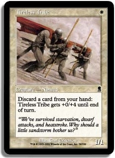 Discard a card from your hand: Tireless Tribe gets +0/+4 until end of turn.