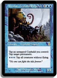 Tap an untapped Cephalid you control: Tap target permanent. UUU: Tap all creatures without flying.