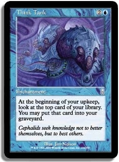 At the beginning of your upkeep, look at the top card of your library. You may put that card into your graveyard.
