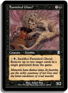 1B, Sacrifice Famished Ghoul: Remove up to two target cards in a single graveyard from the game.