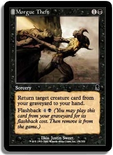 Return target creature card from your graveyard to your hand. Flashback 4B (You may play this card from your graveyard for its flashback cost. Then remove it from the game.)