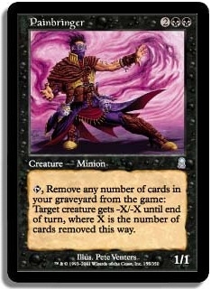 T, Remove any number of cards in your graveyard from the game: Target creature gets -X/-X until end of turn, where X is the number of cards removed this way.