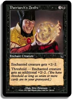 Enchanted creature gets +2/-2. Threshold - Enchanted creature gets an additional +2/-2. (You have threshold as long as seven or more cards are in your graveyard.)