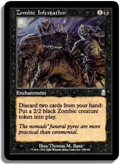Discard two cards from your hand: Put a 2/2 black Zombie creature token into play.