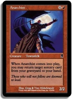 When Anarchist comes into play, you may return target sorcery card from your graveyard to your hand.