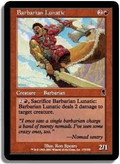 2R, Sacrifice Barbarian Lunatic: Barbarian Lunatic deals 2 damage to target creature.