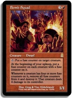 T: Put a fuse counter on target creature. At the beginning of your upkeep, put a fuse counter on each creature that has a fuse counter on it. Whenever a creature has four or more fuse counters on it, remove all fuse counters from it and destroy it. That