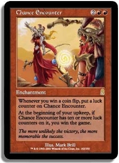 Whenever you win a coin flip, put a luck counter on Chance Encounter. At the beginning of your upkeep, if Chance Encounter has ten or more luck counters on it, you win the game.