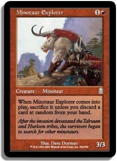 When Minotaur Explorer comes into play, sacrifice it unless you discard a card at random from your hand.