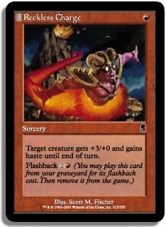 Target creature gets +3/+0 and gains haste until end of turn. Flashback 2R (You may play this card from your graveyard for its flashback cost. Then remove it from the game.)