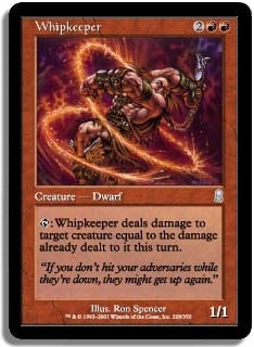 T: Whipkeeper deals damage to target creature equal to the damage already dealt to it this turn.