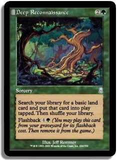 Search your library for a basic land card and put that card into play tapped. Then shuffle your library. Flashback 4G (You may play this card from your graveyard for its flashback cost. Then remove it from the game.)