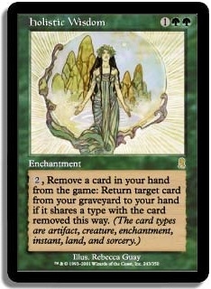 2, Remove a card in your hand from the game: Return target card from your graveyard to your hand if it shares a type with the card removed this way. (The card types are artifact, creature, enchantment, instant, land and sorcery.)