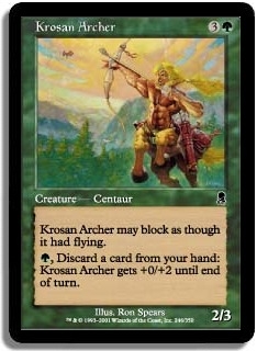 Krosan Archer may block as though it has flying. G, Discard a card from your hand: Krosan Archer gets +0/+2 until end of turn.