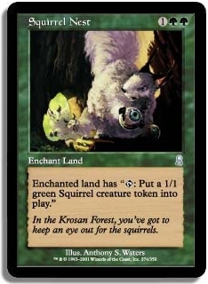 Enchanted land has T: Put a 1/1 green Squirrel creature token into play.