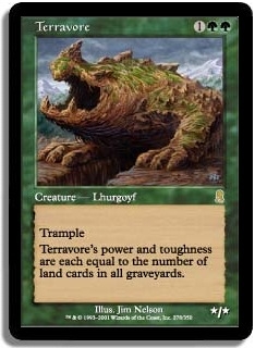 Trample Terravore's power and toughness are each equal to the number of land cards in all graveyards.