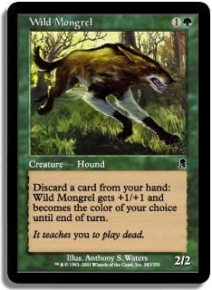 Discard a card from your hand: Wild Mongrel gets +1/+1 and becomes the color of your choice until end of turn.