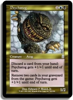 Discard a card from your hand: Psychatog gets +1/+1 until end of turn. Remove two cards in your graveyard from the game: Psychatog gets +1/+1 until end of turn.