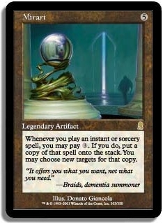 Whenever you play an instant or sorcery spell, you may pay 3. If you do, put a copy of that spell onto the stack. You may choose new targets for the copy.