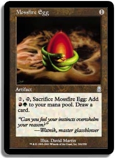 2, T, Sacrifice Mossfire Egg: Add RG to your mana pool. Draw a card.
