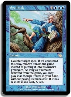 Counter target spell. If it?s countered this way, remove it from the game instead of putting it into its owners graveyard. As long as it remains removed from the game, you may play it as though it were in your hand without paying its mana cost. If it has X in its mana cost, X is 0.