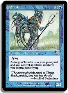 As long as ~this~ is in your graveyard, and you control and Island, creatures you control have flying.