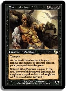 As ~this~ comes into play, remove any number of creature cards from your graveyard from the game. ~this~ has power is equal to the total power of the removed cards and its toughness is equal to their total toughness.
