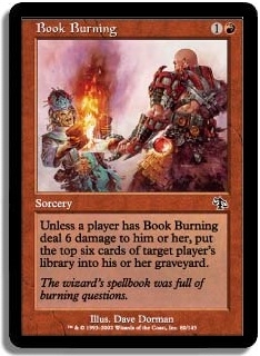 Unless a player has ~this~ deal 6 damage to him or her, put the top 6 cards of target player's library into his or her graveyard.