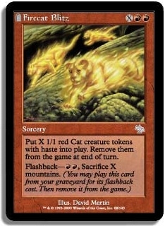 Put X 1/1 red Cat creature tokens with haste into play. Remove them from the game at end of turn.