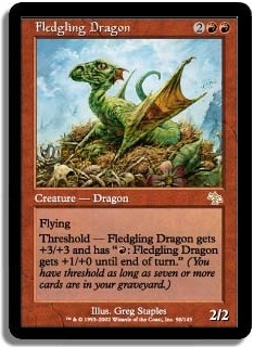 Threshold: ~this~ gets +3/3+ and has "R: ~this~ gets +1/+0 until end of turn."